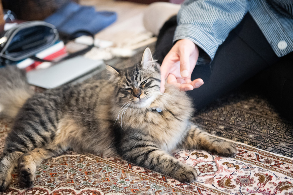 キリっとした風格とは逆で、とても人懐っこい性格。みゃーと鳴きながら、すりよってきます。