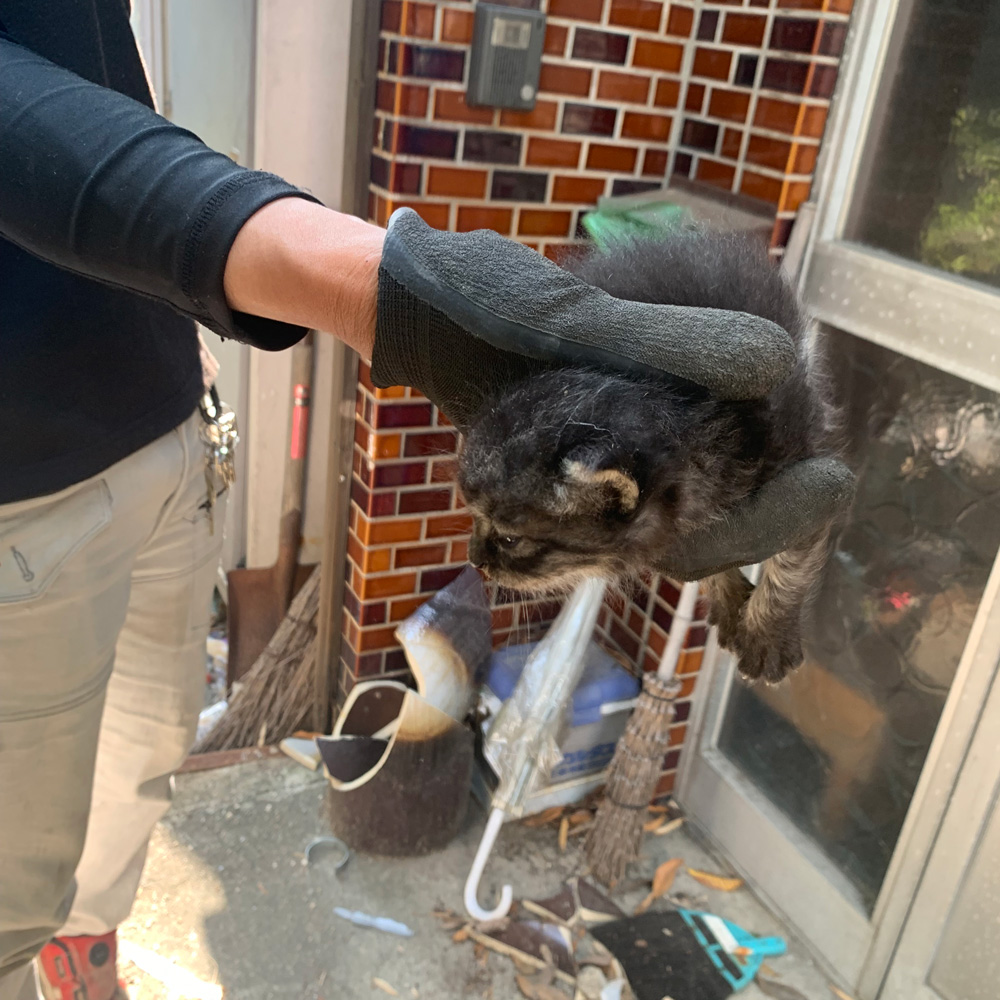 解体中の建物の品物買取と整理をしていたとき、「みゃー」と子猫の声が。